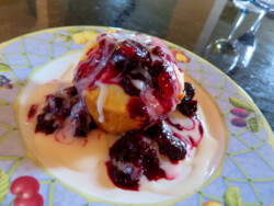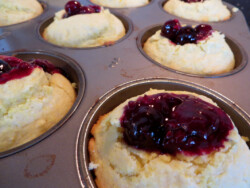 Below are the two recipes I created for our Holiday. Sweet Corn Muffins Stuffed with Berries and Anise Orange Glaze, and Red Grape Relish with Goat Cheese over Toasted French Bread.