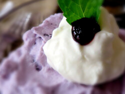 The purple one is just plain regal and came together in 15 minutes. A simple graham cracker crust is topped with canned blueberry pie filling. Then by combining a bit of the filling with some of the whipped cream you get a beautiful purple layer of amazingness. Try them both.