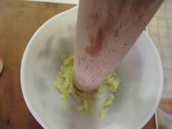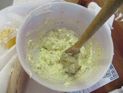 As I arrived with my bread board and my grandmother’s rolling pin in hand, we wasted no time before beginning on appetizers. Delving into a lovely group of zucchini, we began by slicing them lengthwise, then grilling, then cooling them, and rolling them up with a filling of feta, olive oil, lemon and fresh herbs. We topped them with lemon zest and ate them for energy. (You’ll see the photos and I will get a copy of the recipe to acknowledge and share). It was a good way to warm up to the main course.