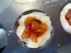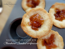 Just because something comes together quickly, doesn’t mean it won’t be stunning or super yummy. With a little experimentation, I finally ended up with my CHAMBORD CANDIED APRICOT STUFFED SUGAR COOKIES IN A CUP. In a cup because a folded-over sugar cookie was melting into a sugar pile. I needed containment! And the tin was the answer. This will NOT be the last time I stuff a cookie in a muffin tin, with something fab in the center. It was just too dang fun to be cantankerous!