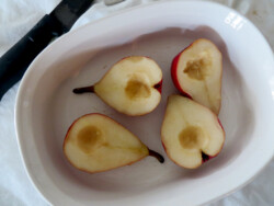 I know that’s random. Pears are so harmless! So friendly!! We refer to faces as pear shaped, diamonds as pear shaped, even tushies as pear shaped. It is definitely something that I should have liked! Maybe it was the mushy texture. Or what I perceived as a perfumed taste. Whatever the reason, I steered clear of them for the longest time.