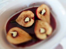 My PORT WINE POACHED CRIMSON PEARS WITH SOUR CREAM AND BROWN SUGAR came together in less than an hour and I’m definitely making this for my next dinner party. Whatever your stance is on pears, I know one thing, wear a helmet because you’ll have to wrestle all the guests for the first amazing bite!