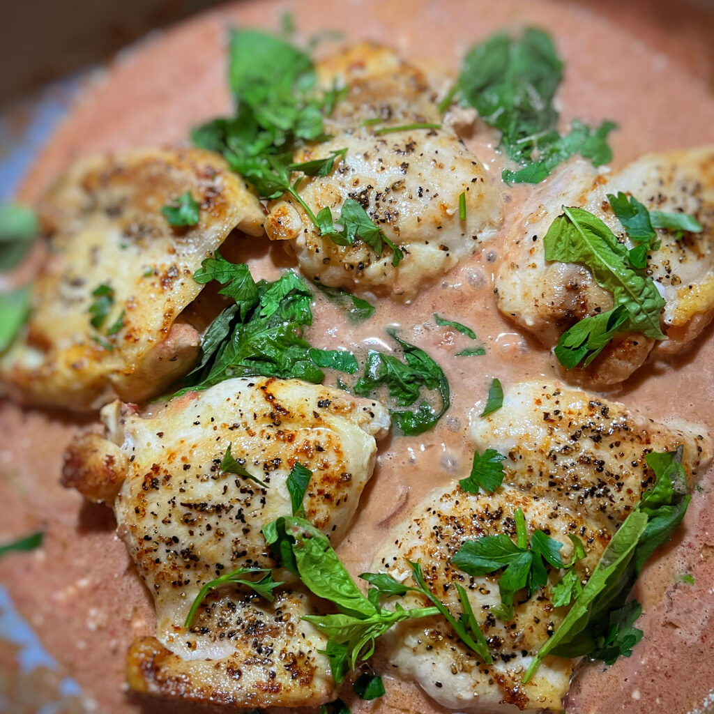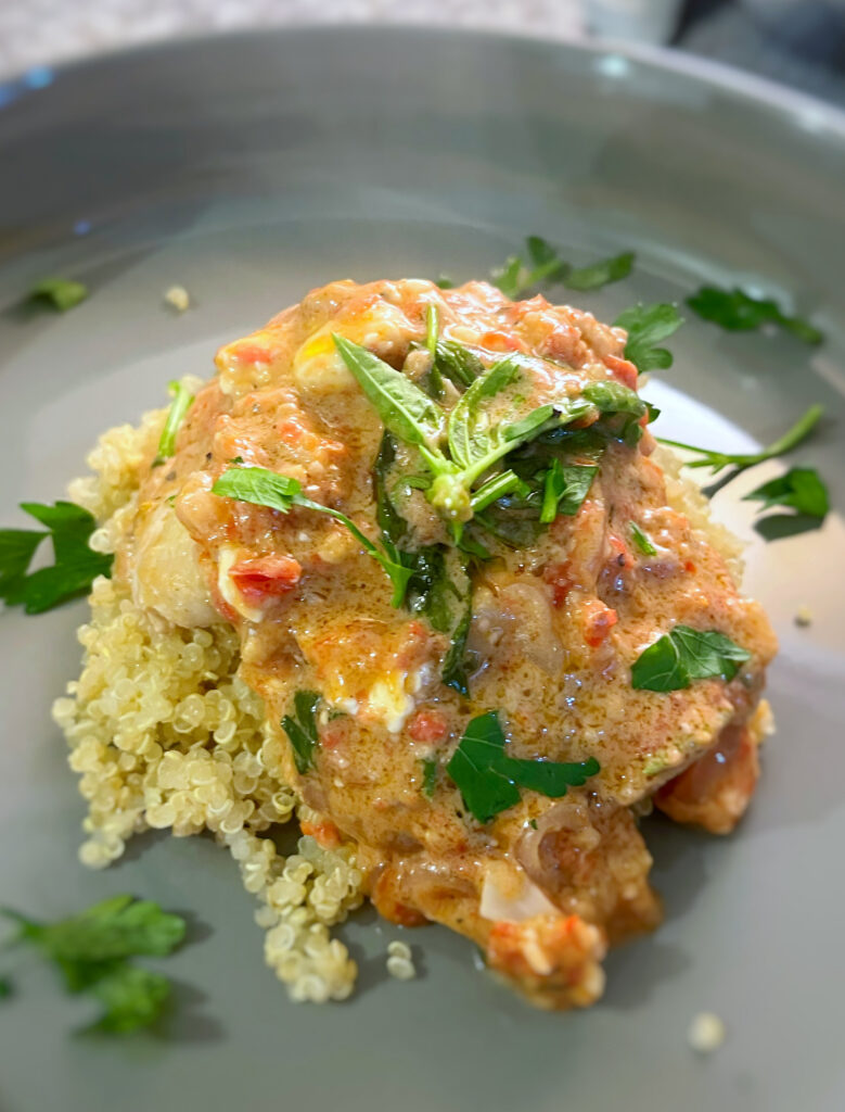 • One Pan Chicken with a Tomato, Cashew Butter Cream Sauce