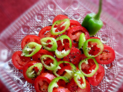 Dress up Roma tomatoes with the sweet, peppery yet mild flavors of banana peppers. It all blends perfectly when you top it with flavored balsamic.