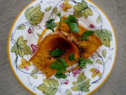 And speaking of gourds, how about let’s give a round of applause for that beautiful photo above, featuring one of my favorite things to roast: butternut squash. Orange, sweet, earthy, vibrant and patient; the odd shaped and lightly colored orb lay in my kitchen for three weeks before it became dinner and would have remained perfectly fine for a bit longer if I hadn’t come home from the store feeling a chill to the bone and needing something roasted. It’s truly a favorite, and so easy to make. For me, what doesn’t get devoured hot, gets put in the fridge for another day, and enjoyed cold with a lunch of ham and cottage cheese, or mushed up with a cheesy pasta. Or drizzled with honey and enjoyed with crusty bread and kalamata olives.