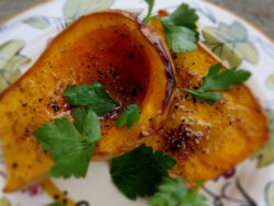 And speaking of gourds, how about let’s give a round of applause for that beautiful photo above, featuring one of my favorite things to roast: butternut squash. Orange, sweet, earthy, vibrant and patient; the odd shaped and lightly colored orb lay in my kitchen for three weeks before it became dinner and would have remained perfectly fine for a bit longer if I hadn’t come home from the store feeling a chill to the bone and needing something roasted. It’s truly a favorite, and so easy to make. For me, what doesn’t get devoured hot, gets put in the fridge for another day, and enjoyed cold with a lunch of ham and cottage cheese, or mushed up with a cheesy pasta. Or drizzled with honey and enjoyed with crusty bread and kalamata olives.