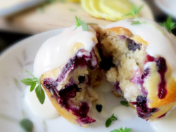 As I improve my craft, baking has always been on the back burner. But today I came up with a mix for these LEMON THYME BLUEBERRY MUFFINS without missing a beat. And they turned out spectacular. Adding a bit of inspiration from the garden, my recently planted lemon thyme smelled and tasted like it would add tremendous flavor that wouldn’t overbear or even be recognizable. And instead of any oil, some light sour cream and moist brown sugar brought it all together. Once out of the oven, I confess. I couldn’t wait for them to cool. Popping one in my mouth I first tasted the warm brown sugar. Then the lemon zest and blueberries were almost perfumed yet balanced with the addition of the thyme, and allspice. In total, it was just was I had envision on my tongue.