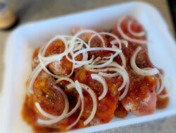 Chicken / April 6, 2014I love quick, especially on a weeknight. Sure it’s fun to experiment with food all afternoon. But when the troops are drooling, you need fast. That’s why a little bottle of Trader Joe’s Peach Salsa turns a boring chicken dish into a bravo chicken dish in no time. I like to use a certain brand of rub, too. You will see them in the slide show below and the link to buying it is in the recipe.