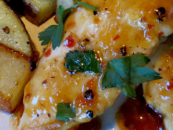 Enter a quick dish I whipped up last night in, seriously, 15 minutes. (Perhaps I’m over estimating the importance of poultry in the master scheme of things, but fire up the band ’cause this was delish.) I served it with quick caramelized russets with parsley and onion.
