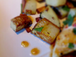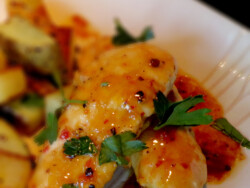 Enter a quick dish I whipped up last night in, seriously, 15 minutes. (Perhaps I’m over estimating the importance of poultry in the master scheme of things, but fire up the band ’cause this was delish.) I served it with quick caramelized russets with parsley and onion.