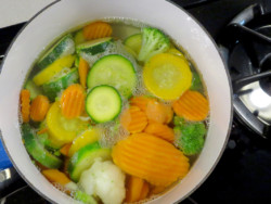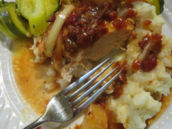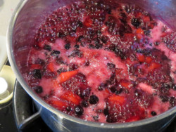 So, while my daughter and one of our friends spent the day viewing Lake shore Drive from the top of the Hancock building, Kaitlyn and I were busy chopping apples, slicing pears, and generally furrowing through every ingredient in the pantry as we created our meal. And did we ever have fun! Discovering a jar of Cherry Salsa, we found the sauce to be spicy and perfectly fruity. By pairing it with canned pears, maple syrup, and some sliced onions, the chicken was on its way to being famous. Then we reduced leftover fruit and sugar down into a luxurious and colorful compote to layer over blueberry scones before topping it all with whipped cream. To round out the meal, we simply took a bag of quality frozen vegetable medley, cooked and drained it, and then added an easy apple cider vinaigrette for a warm vegetable salad.