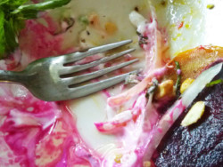 Misc. / June 6, 2014For the longest time, I had a rather unsentimental view of beets. Fed to me from a can, warmed to a slow death on my school lunch tray, and enemy of all white apparel; these were my deeply held beliefs and what I thought were valid reasons to take the long way around the buffet line. Of course things change, and you are introduced to the finer side of a beet. That included having them on a salad, or with pickles and chicken breast. Not very sophisticated but at least a step in the right direction.