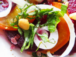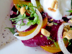 Soon I had my first brush with the elegance of this misunderstood tuber and delved into a plate of roasted beets, thinly sliced, and sprinkled with delicious condiments one might find ONLY in a very snooty restaurant…and I was hooked.